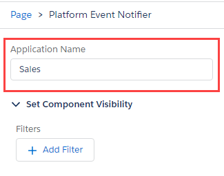 Click on the component in the app builder to access its properties. Enter an application name if you want to filter notifications by application. Otherwise, leave it blank.