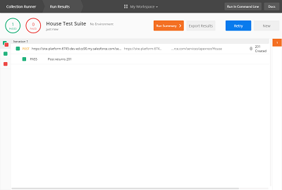 To run the test suite click the Runner button in Postman. This will open the Collection Runner window. Select the House Test Suite then click the Run House Tests Suite button*.* This will run the collection and show the results.