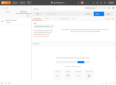 In Postman click New, then Collection, then give your collection a name and hit Create. I named mine House Test Suite.